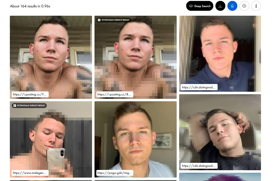 얼굴이 들어간 사진을 검색하면 해당 얼굴을 AI 기반으로 검색하여 어떤 웹페이지에 사진이 올라가있는지까지 결과가 모두 나온다.